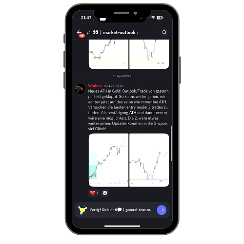 Erhalte laufend frische Setups, Marktanalysen und Signale — damit du nicht nur Chancen rechtzeitig erkennst, sondern auch verstehst, wie sie entstehen. Lerne direkt aus der Praxis und entwickle ein sicheres Gespür für den Markt.